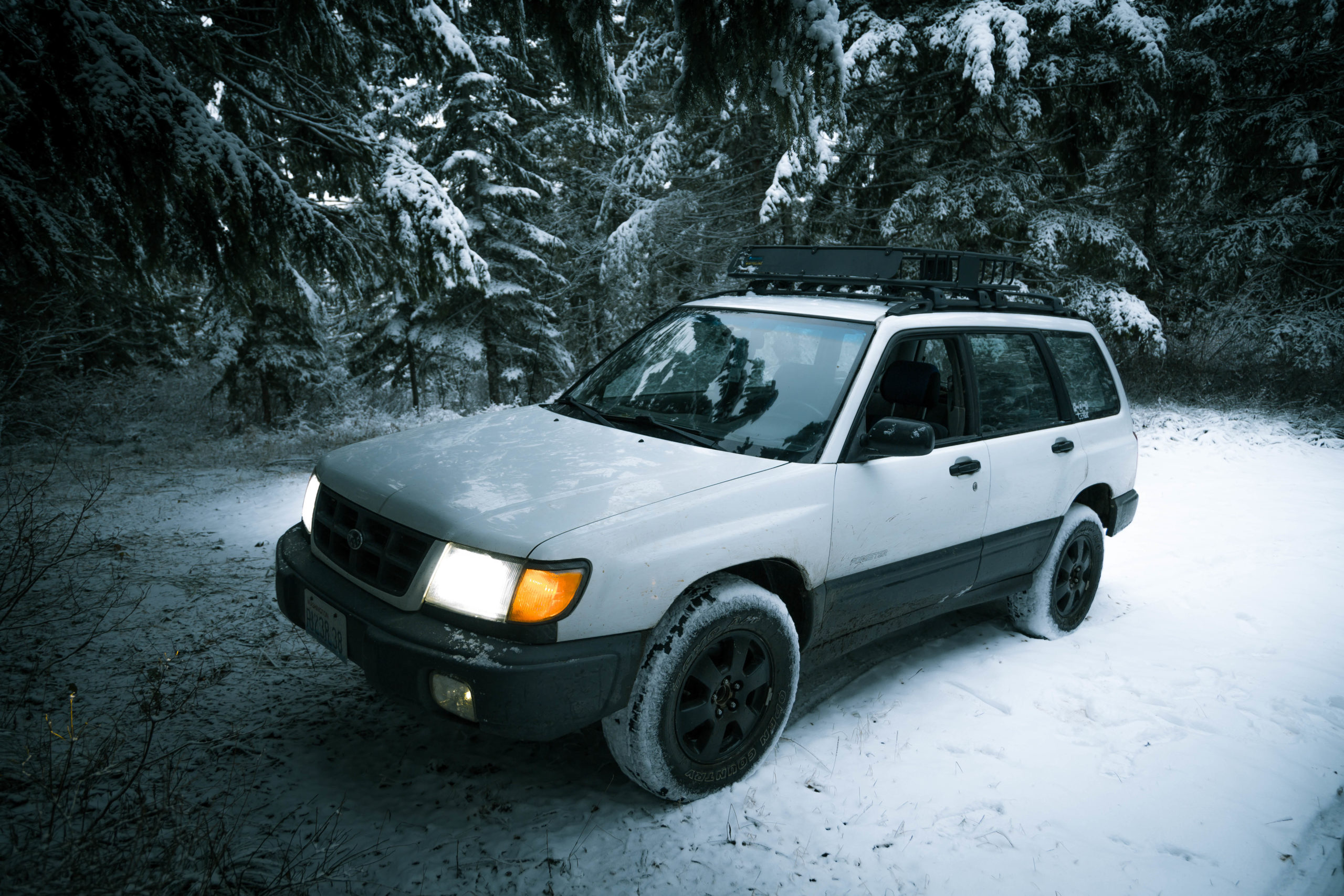 I initially had a set of 10 ply 30 inch mud terrain tires on my Subaru Forester. The guy I bought it from had installed them and was really proud that they were 10 ply. But they weighed roughly 50 pounds each and felt like they were beating the gearbox to death. I quickly realized that it was time for a new set of tires better suited for my old 2000 Forester that I’d purchased to drive out into the woods, and up to Timberline Lodge on the weekends.
